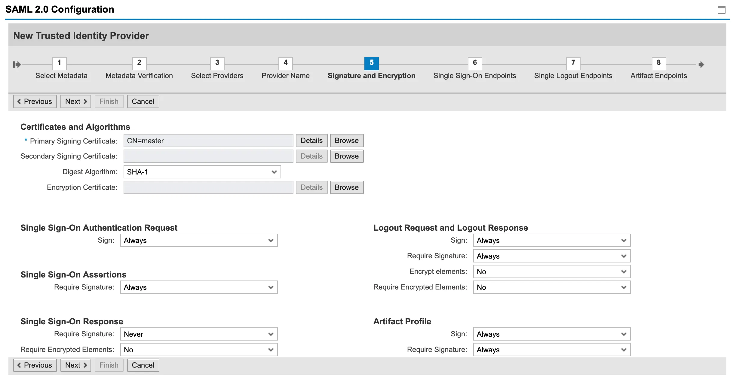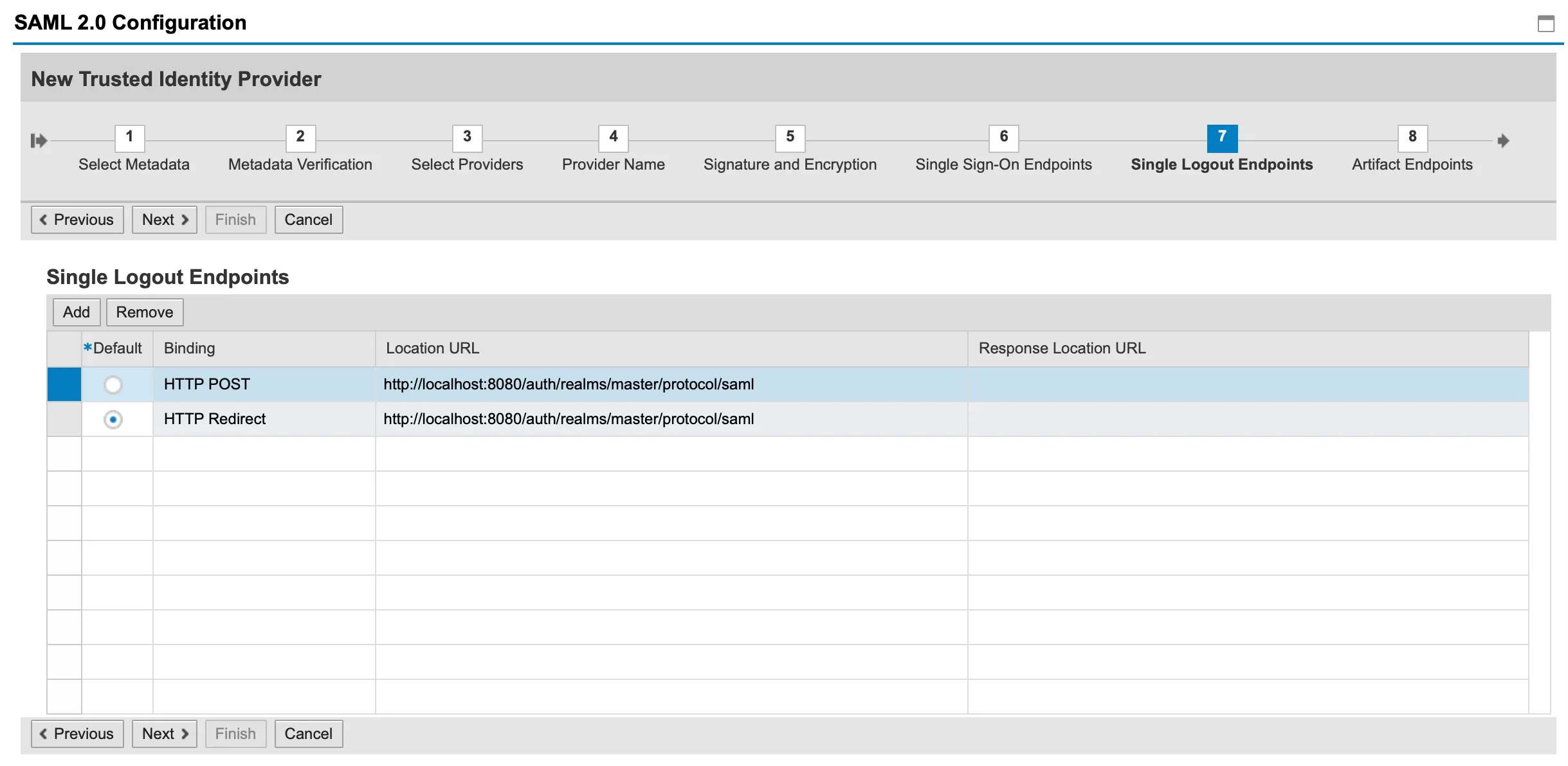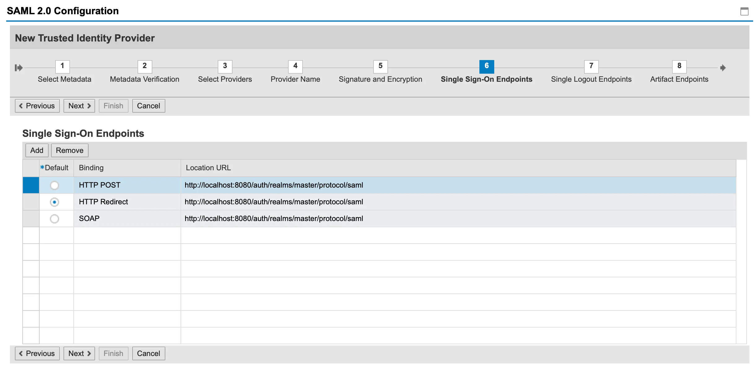 Click on Finish. The Keycloak SAML 2.0 IdP is added as a trusted IdP.