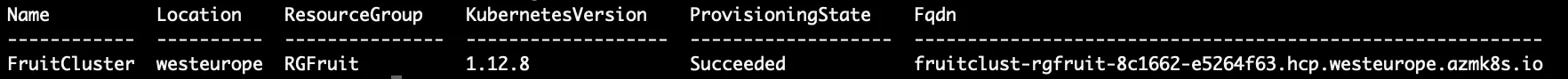 az aks show -g RGFruit -n FruitCluster -o table