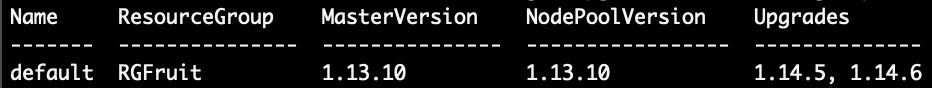 az aks get-upgrades --resource-group RGFruit --name FruitCluster --output table