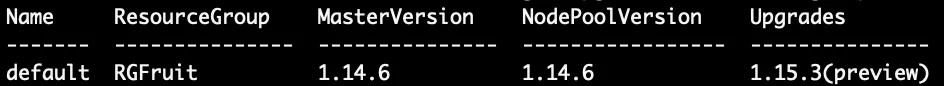 az aks upgrade --resource-group RGFruit --name FruitCluster --kubernetes-version 1.14.6
