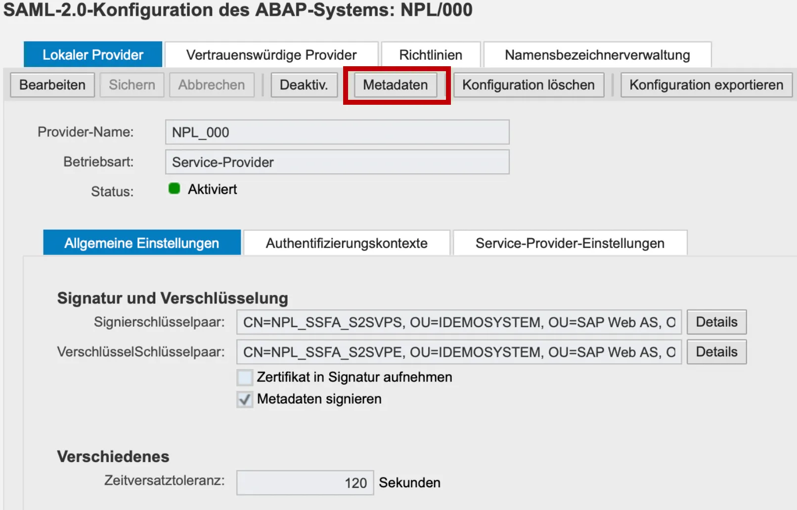Call the SAML 2.0 configuration Web Dynpro app via transaction SAML2 and click on Metadata.