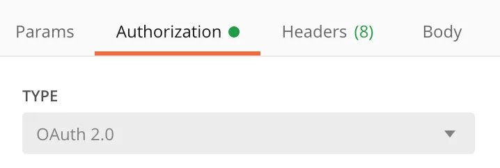 To get an OAuth token from SCP using Postman, create a new request and open the Authorization tab. Select as type OAuth 2.0.