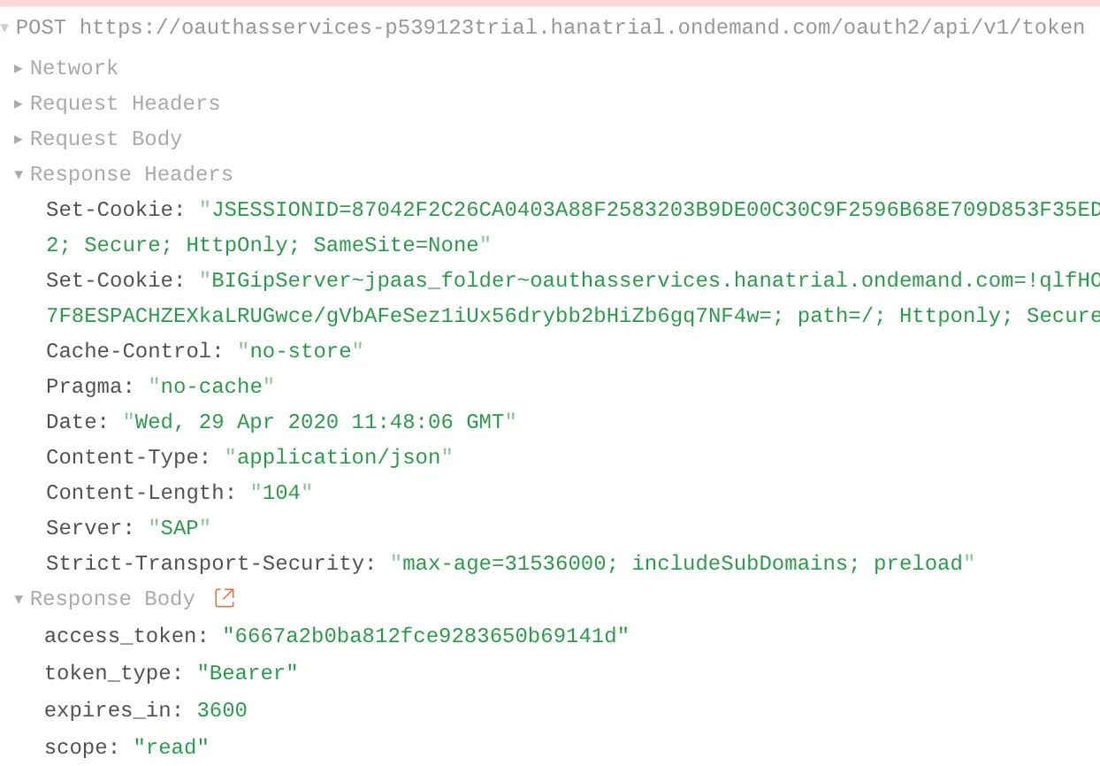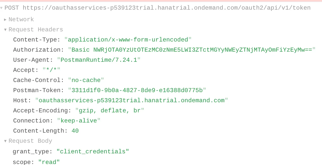 Here, the URl is https://oauthasservices-p539123trial.hanatrial.ondemand.com/oauth2/api/v1/token 🔗