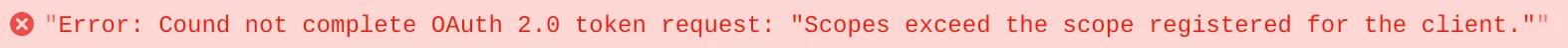 Error: Cound not complete OAuth 2.0 token request: "Scopes exceed the scope registered for the client."
