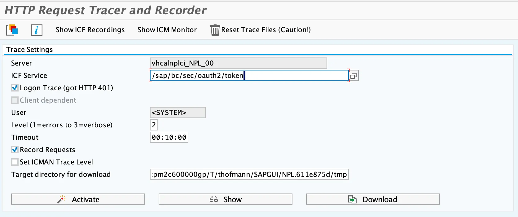 Click on Activate and reproduce the issue. To see the result, click on Show.