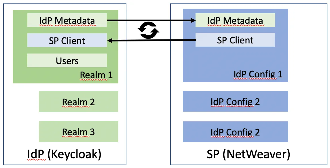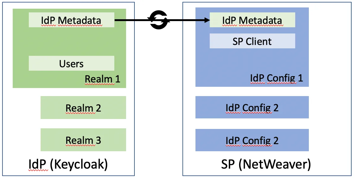 To be able to log in to your SAML 2.0 IdP after a SP redirect, the SP must be configured in your IdP. While this sounds obvious, it can be confusing when you have several clients in your IdP and several IdP in your SP. For instance, you must ensure that the SP is redirecting to the correct IdP. In Keycloak, you may have several realms. You have to add the NW ABAP SP to the realm you are using for SSO. This also means that you have to configure your NW ABAP SP to use the correct realm on the IdP.