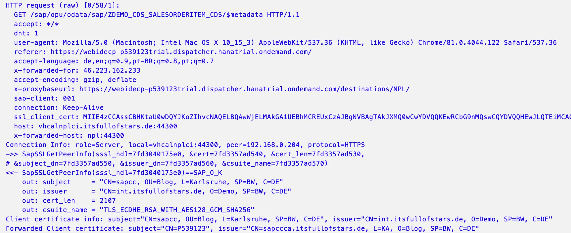 Next step is to read and validate the client certificate of the user. Request to OData service: