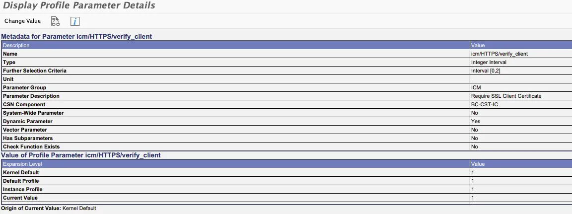 A pre-requisite is to configure NW ABAP to support TLS / HTTPS. To be able to log on to NW ABAP using a X.509 user certificate, the ICM service must be configured to accept client certificates. This is a profile configuration. The parameter is: