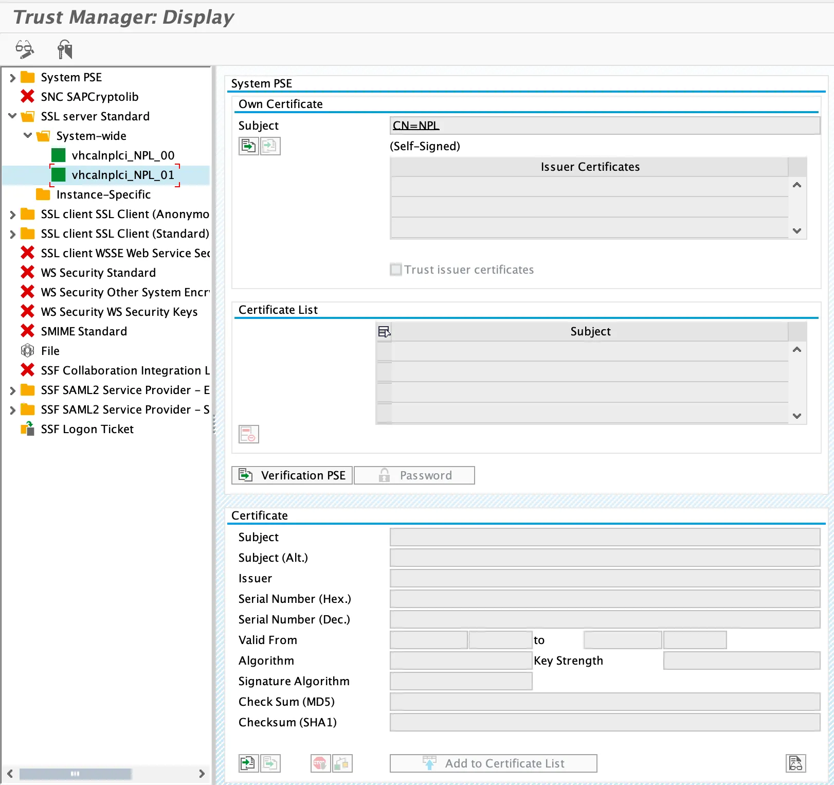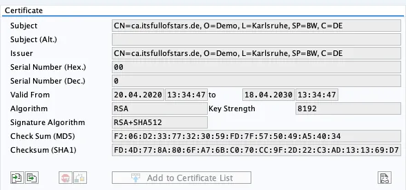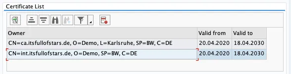 Now both certificates are in the PSE and can be used by NW ABAP to validate a client certificate issued by the intermediate CA.