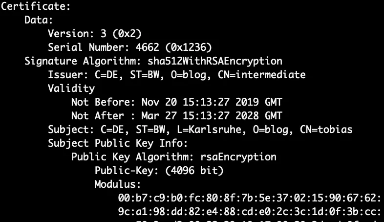 Subject: C=DE, ST=BW, L=Karlsruhe, O=blog, CN=tobias