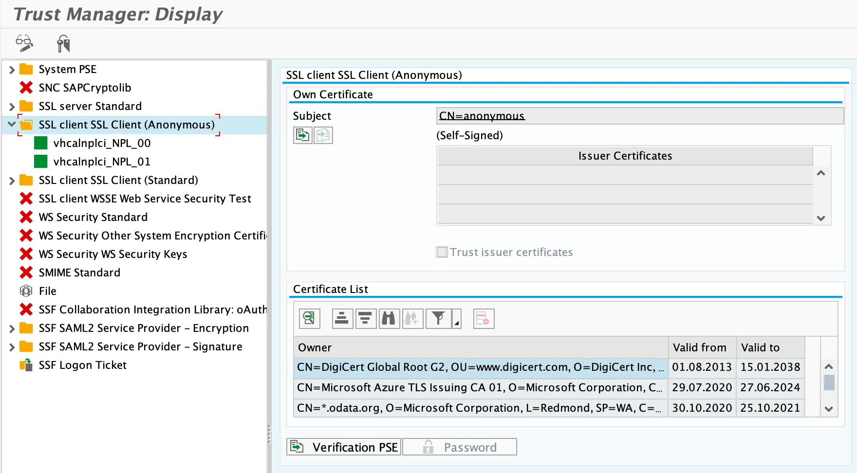 The certificates needed to be able to connect to the service https://service.odata.org 🔗 are not available in PSEA. These must first be obtained from the service and imported into the PSEA. Download the correct certificates from the service.odata.org and save them in Base64 CER format.