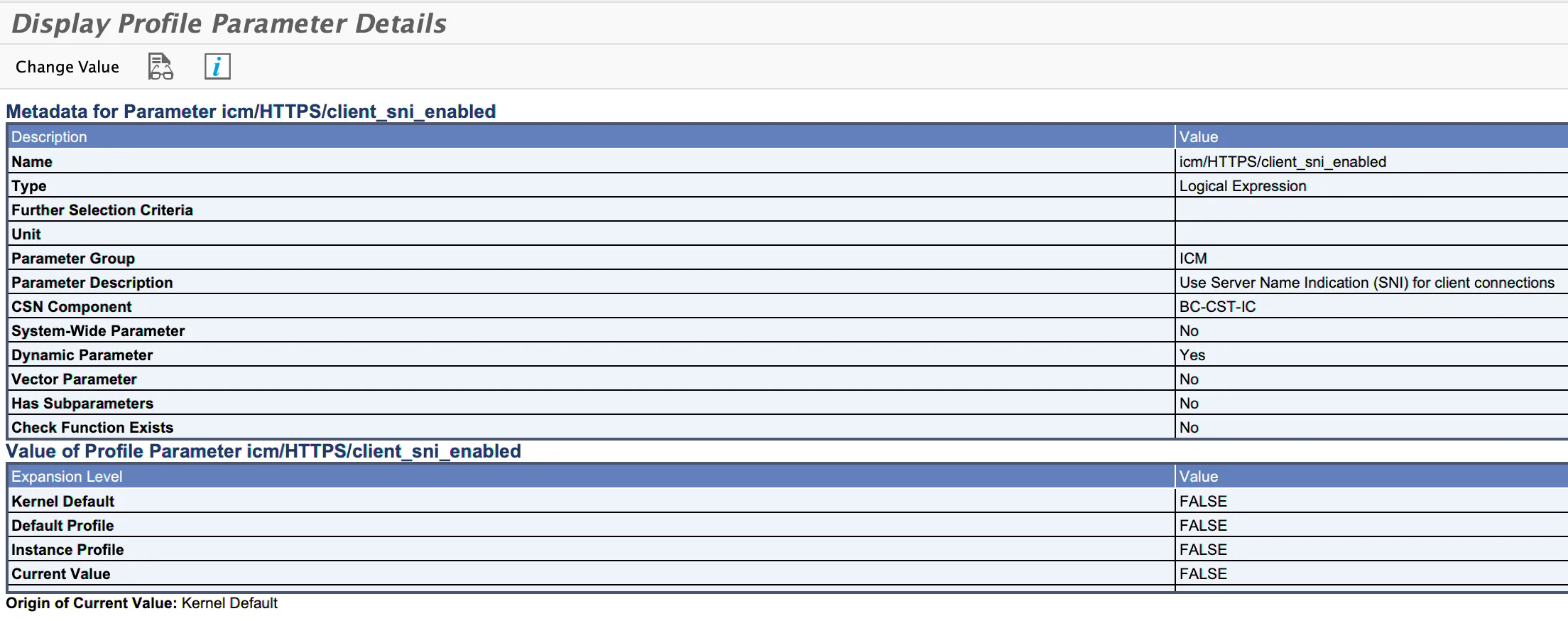 I´ll use the SAP NetWeaver ABAP Developer Edition to show how to enable SNI support. It´s an SAP system with kernel release 753 PL 400 and the default value is false. Goal of the scenario is to connect to https://services.odata.org 🔗 via SM59. For this to work, NW ABAP must connect to the web server and use SNI. Without SNI, the target server cannot be resolved and a wrong TLS certificate will be returned.