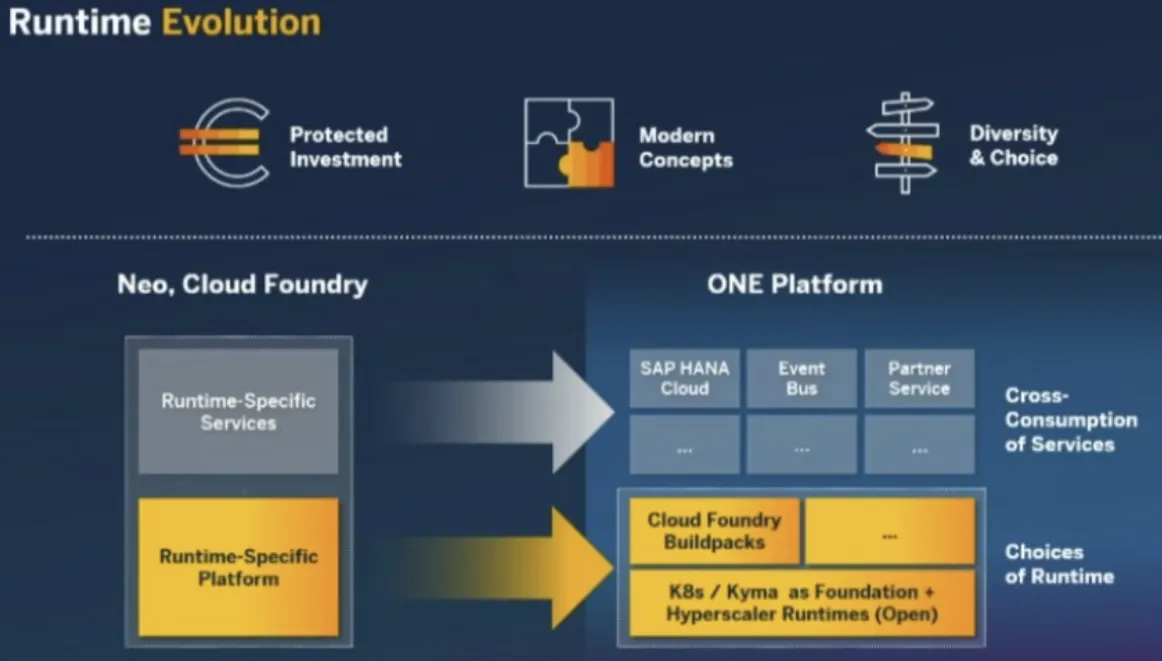 * SAP’s CTO Jürgen Müller showed at DSAG Technologietage 2021 the one platform approach which can lead to having a free tier.