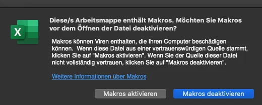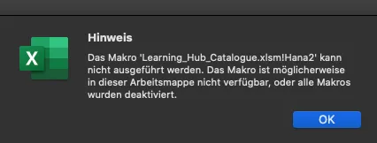 It is worth the effort to find and click on the link, as it will start the download of an Excel file containing all available courses. Yes, Excel. In case your organization is not blocking the download of potentially insecure files, you get the complete LH content in an Excel file. Be aware: it is a XLSM file. If you are not familiar with MS Office, XLSM means the file contains macros. In case you participated ever in any corporate security training, you normally stop now. If you still think it is safe to open a file that potentially can attack your computer and your company network and put them at risk of a ransomware attack, please go ahead. Last chance to not have to buy Bitcoins gives you Excel as it asks if you want macros to be activated or not.