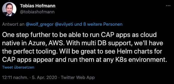 Why is this now a lost opportunity for SAP? With the SAP cloud SDK or with their Cloud Application Programming Model (CAP), SAP offers a way to develop cloud apps. Developed to run them on SAP BTP. A while back I had several discussions on bringing at least CAP to the cloud that customers are using: Azure. For instance 🔗: