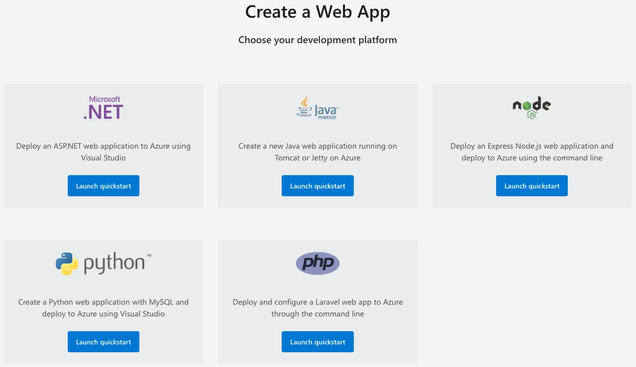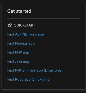 One of my ideas was to add e.g. CAP next to other Azure app templates in the official listings. If you look at the Quickstart guide for Azure App Service 🔗, you can see that several templates are provided.
