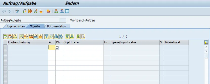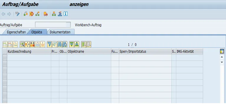 The details of the selected transport request are shown. As nothing was yet done, it is empty.