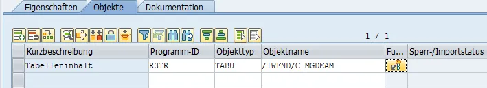 Click on the button in column Function. A new dialog opens. It is not very intuitive to know what to do here. The intent is to enter the table entry that should be added to the transport.