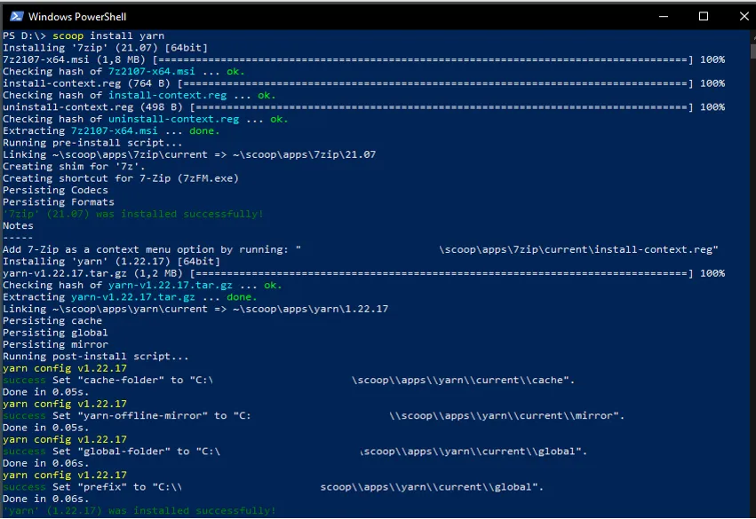 scoop install yarn