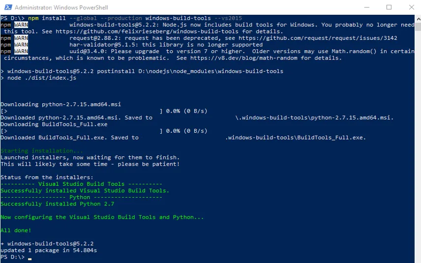 npm install --global --production windows-build-tools --vs2015cls