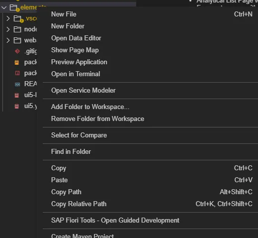 Go to the metadata file of your Fiori project, right click and select βOpen Service Modelerβ