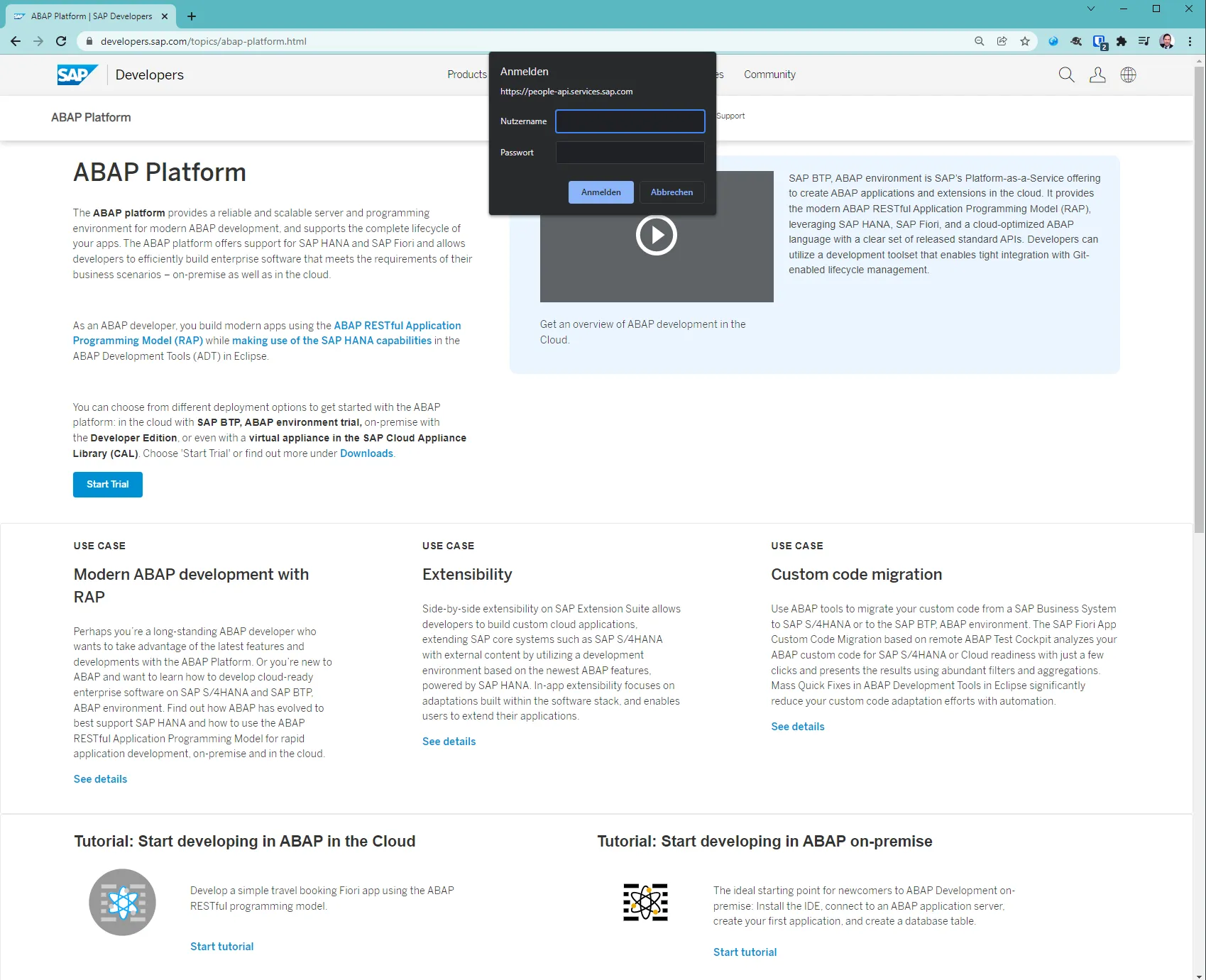 Another issue was an error regarding missing authentication on the SAP Developers site.