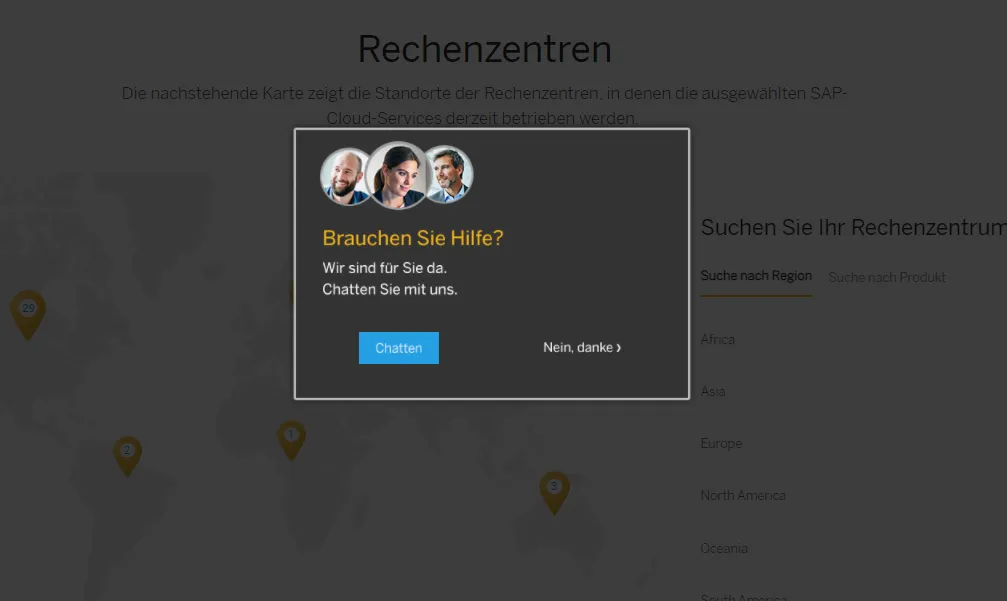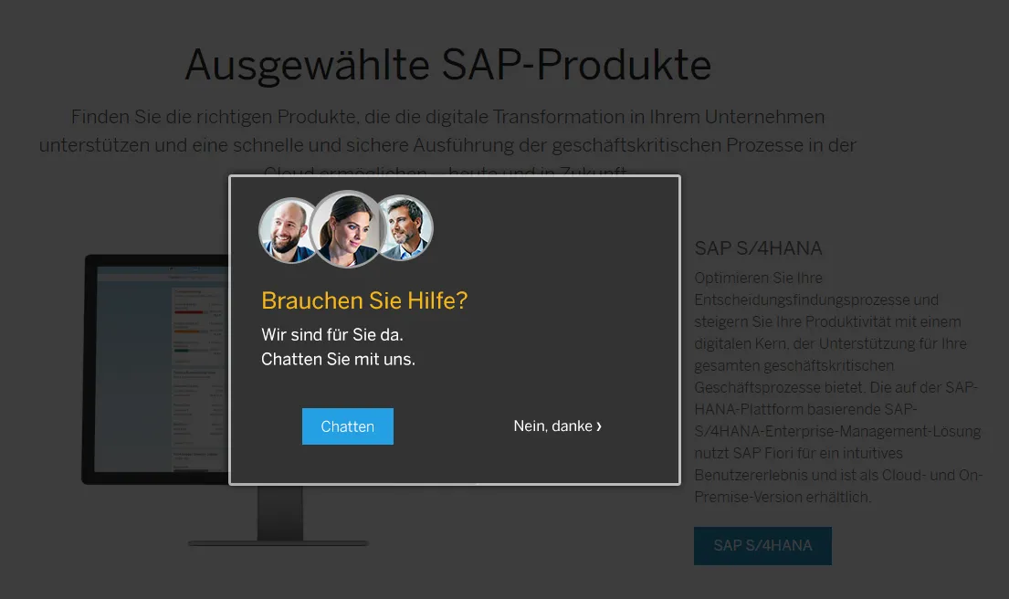 Another classic. Reported as โnot niceโ by many people to SAP. Fast forward a few years: not changed. If you go to an SAP product site ๐ to read about a product, youโll get a popup asking if you need help. Every! Single! Time! Nothing better when it comes to customer interaction than to interrupt them when they try to focus, read and understand a document.