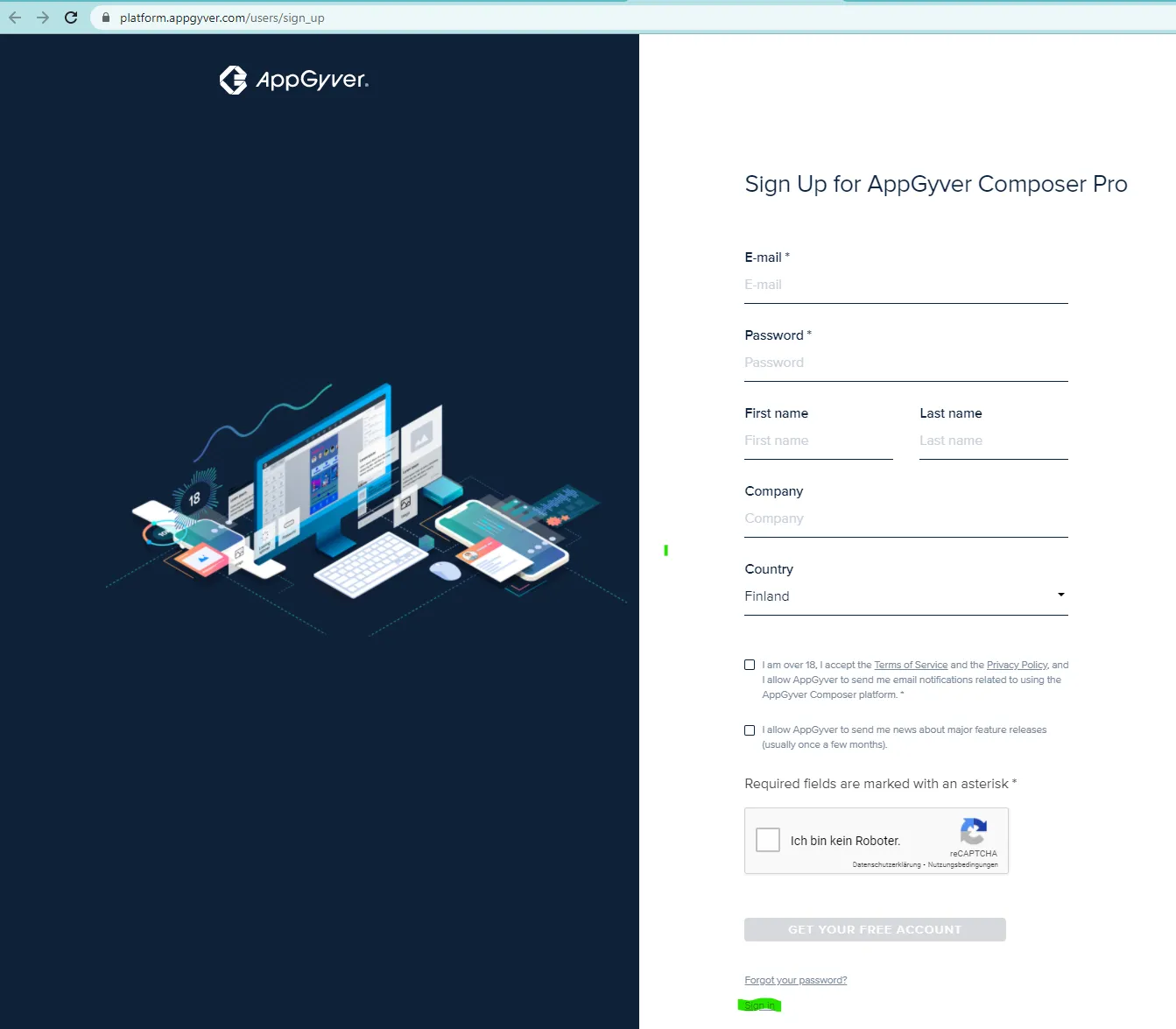 Again: the UI for the forms โ sign-up and sign-in โ is not bad. If you do not try to log on via a smartphone ๐. But the UX can be improved. Note also the default selected country: Finland. Instead of trying to use what the browser sends.