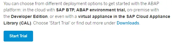 Donโt ask me where the download section is. The title and content for under the hood is about the details of the ABAP platform. In the info box, however, there are further links to download the developer edition and access to CAL. But why is the text of the link than labelled Download and not under the hood or simply: look at the links or developer resources?