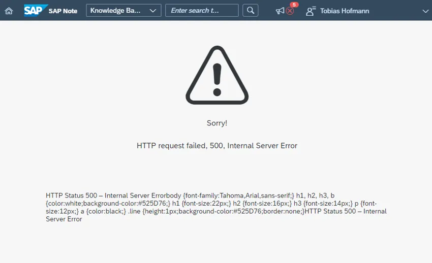 Searching for an SAP Note I got an error. Thatโs like the worst case for UX. You already need to consult a note because of some issue that you have with SAP, and instead of getting an answer, you get another error.