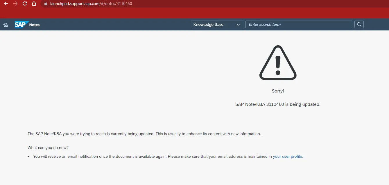 Thatโs a classic. It comes up every few months: the note you need ๐ is being updated by SAP and you cannot access it. Not even a previous version. Latest iteration: 31. Jan. 2022 ๐.
