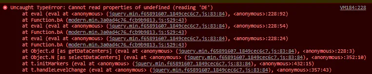 Why are there no data centers shown in the map? The log shows that something goes wrong when trying to read a property DE. It seems that the site is not working when your browser is using German?