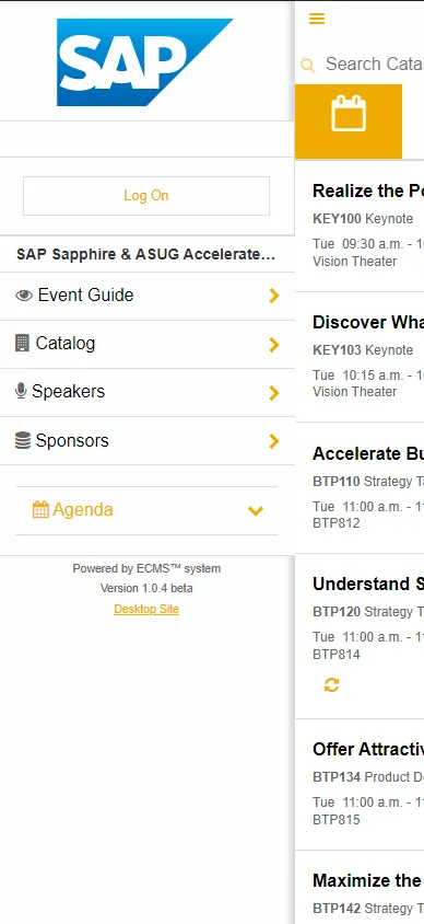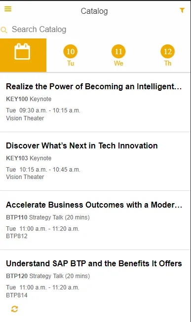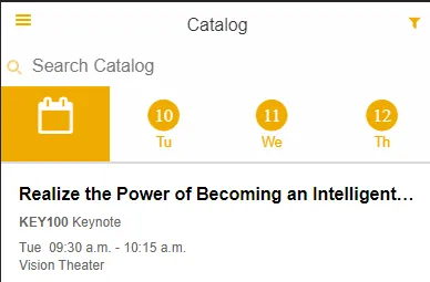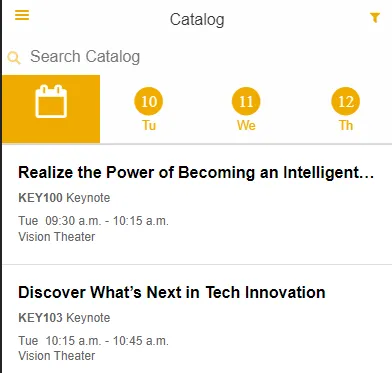 Opening the session catalog gives you a new app. The top navigation changes: hamburger menu moves from right to left.