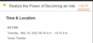 Note: when you are at the session catalog, the main navigation is not highlighting any tab. You are not at the Content navigation any longer.