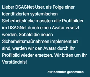 Kurz nachdem die Profilbilder entfernt wurden bekam man nach der Anmeldung im DSAG Net auf der Startseite einen Hinweistext angezeigt.