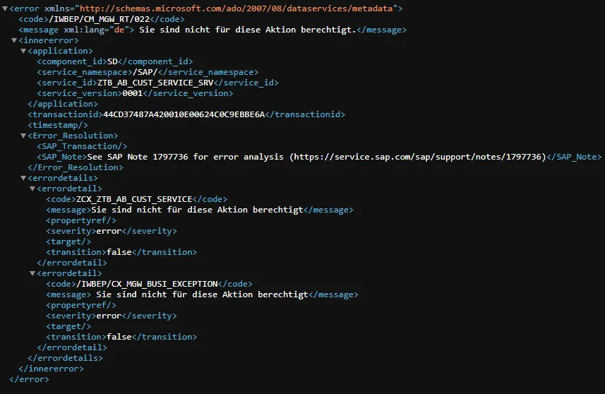 The OData service returned the available customer data: firstname, lastname, address, phone, mobile, salutation, account number. The complete customer records. I tried it with different zip codes, and it always worked. Reminder: it worked using the anonymous OData service! That was now a whole new level of SNAFU. Looking at some data it was clear: yes, the data is valid. It is real customer data. Looking at their branch offices I used the zip code of some more crowded places and the query failed due to a timeout. Thanks to slow performing SAP Gateway system it was not possible to get the customer data when there were too many customers inside a given zip code. Making it not impossible to get the customer data, but harder.