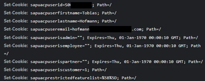 Taking a closer look at the call reveals that several cookies are set by the service. Cookies that define who you are and what your role is.