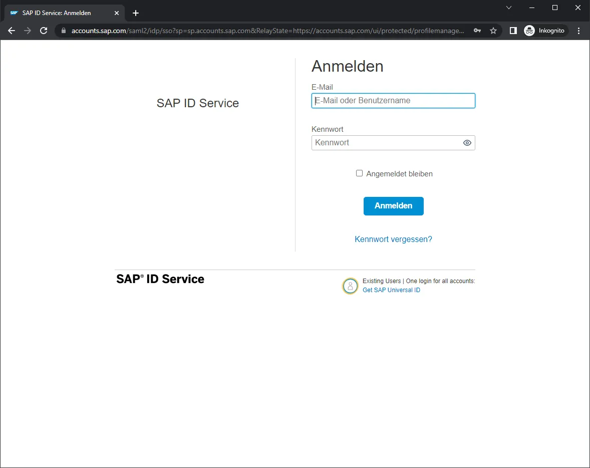Regarding the missing data pricacy and cookie statement: you might say that the logon page is not intended for direct access and public facing. A user normally first accesses an SAP site like sap.com and for logon are redirected to the ID Service. On the main pages like sap.com you get a cookie notice and privacy policy. But, you can log on to SAP IDS and access your profile. So the direct access is possible. Let’s take a look at the SAP Universal ID scenario.