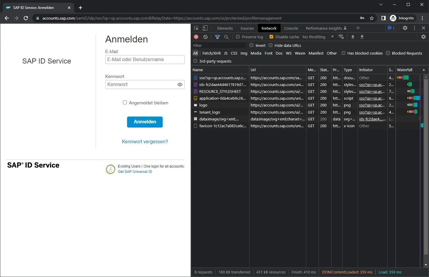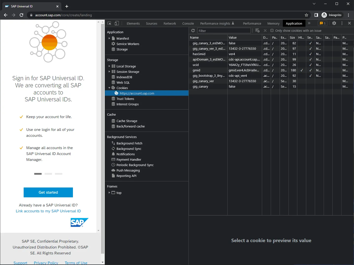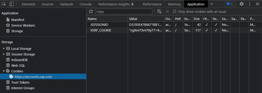 Normally a public facing page should contain a link to the companies data privacy. For the cookies: maybe the SAP ID Service logon page does not set any cookie? Let’s validate this: