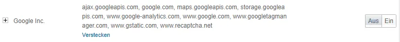 List of domains from Google if functional cookies are allowed.