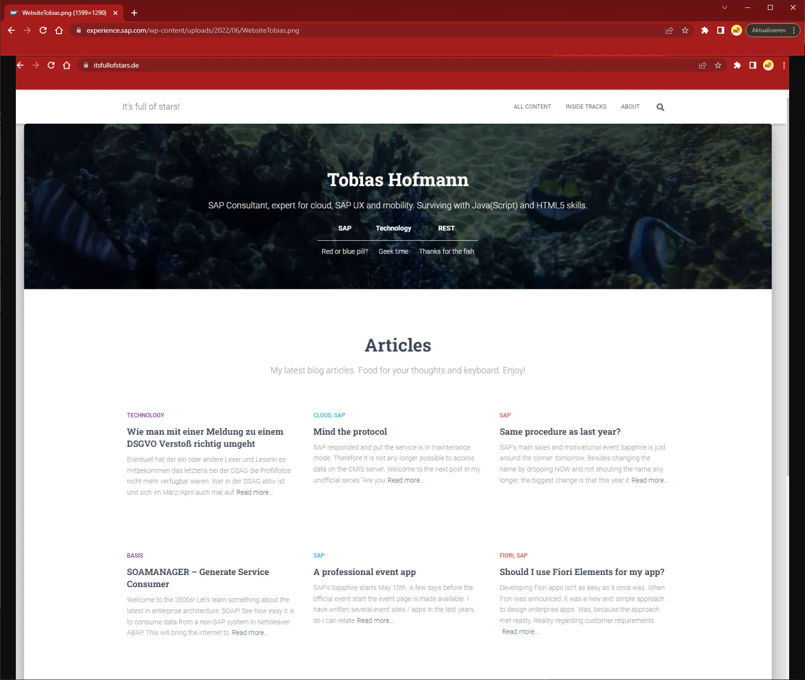 WordPress 🔗 is one of the most popular CMS systems. It is easy to use, can be run in the cloud or on premise, and offers a wide range of plugins and themes. WordPress is available for almost 20 years. It has a huge community and allows to run a web site at low costs. This lowers the entry barrier as there is a wide range of resources freely available. In case you want to publish your own articles, show your CV, portfolio or run an event, chances are very good someone already used WordPress for this, and used WordPress to document how this was done. This enables even people with little to no IT skills to run a blog. Millions of web pages are powered by WordPress and many companies use it. SAP is no exception. One of the SAP websites that uses WordPress is the Fiori Design Guidelines site 🔗. The site for SAP Fiori web, not for iOS, Android or CX design.