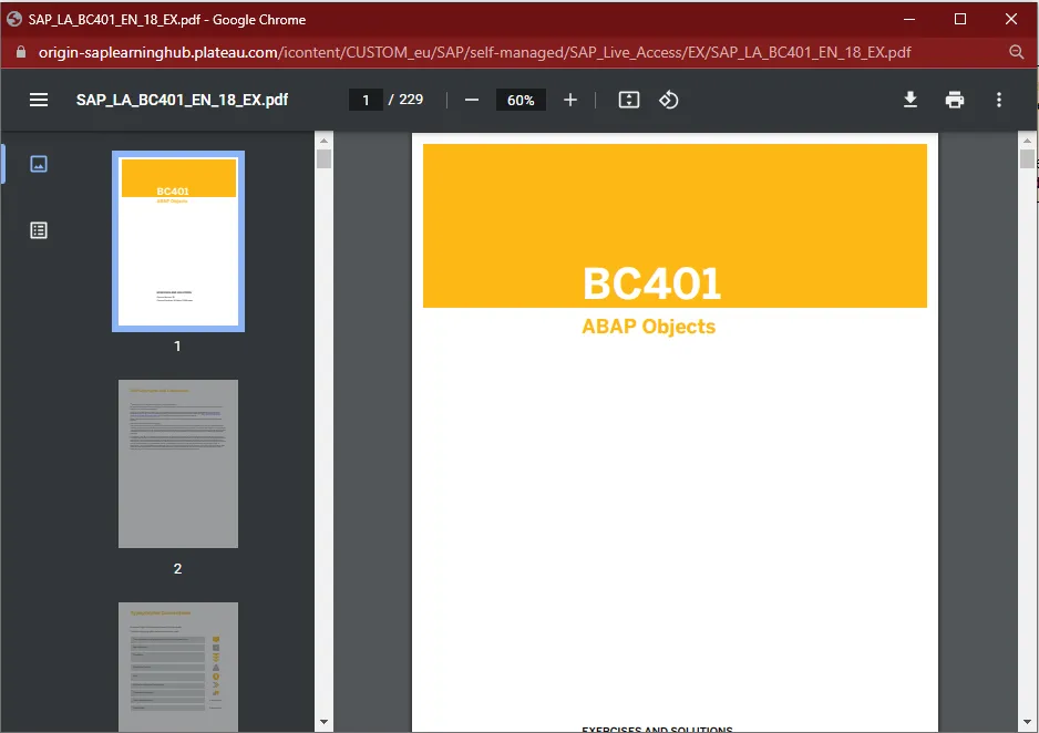 Expectation management is important, so: the learning exercises for many courses are not access protected. Just like with the training PDFs, you need to know the URL to the PDF, but this time a valid LH subscription is not needed. The URL is a fixed part that points to the server and the technical name of the exercise. The technical name is a little bit harder to construct, it is not just filling in the name you can find in the course Excel file. Every file name starts with SAP_LA_ followed by the technical name (no Col) and ends with _EX.pdf.