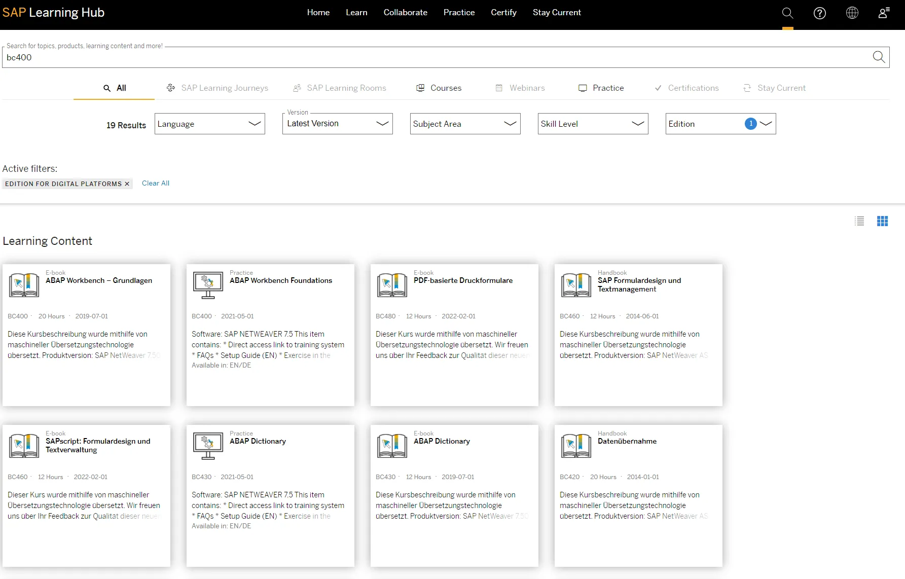 For those not familiar with LH: it provides access to a wide range of SAP training materials. This including the PDFs of the SAP education courses, like BC400. SAP is not providing these training materials for free. You need a LH subscription to access them. The price SAP asks for is high, but you get more than just PDFs: additional learning content, e-books, e-learnings or SAP system access. Albeit most people might book LH first of all because of the training course PDFs.