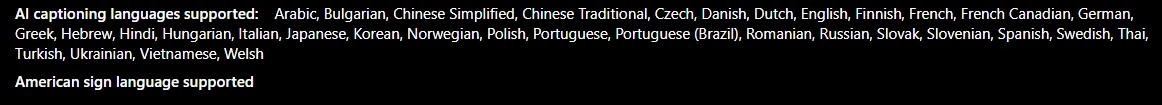 When it comes to applied AI: look what is possible. The videos are offered with AI generated captioning. Microsoft even offers sign language.