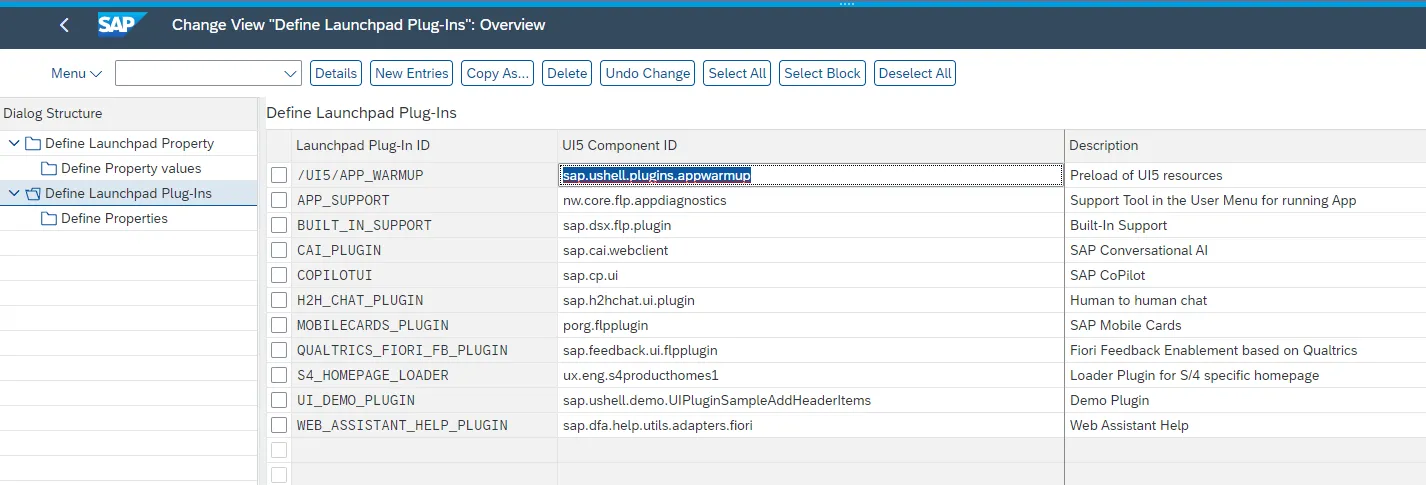 The transaction opens. On the left side double click on “Define Launchpad Plug-Ins”.