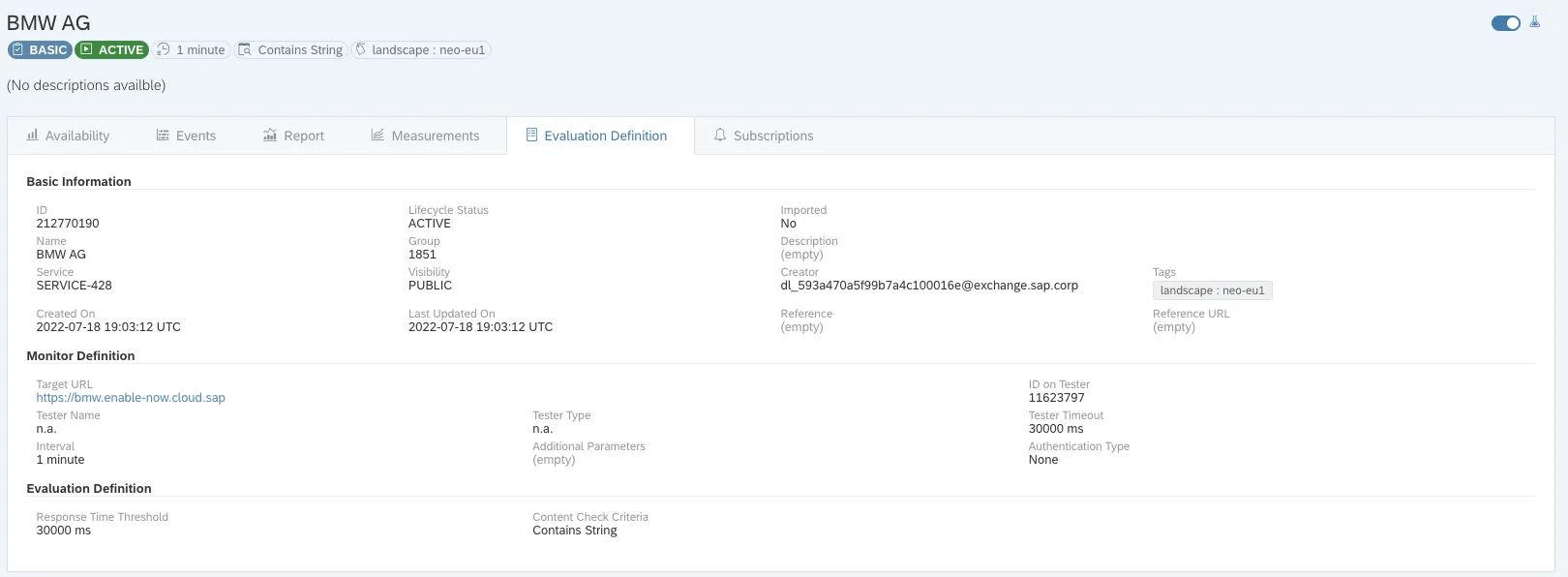 What can you use the information provided by the app for? Sure, social engineering. You can see some SAP customer information. Get some idea what they are using from SAP Cloud: CF, Neo, services. But most is very technical and used for a rather low-level monitoring. Of course, every piece of information so far should be better protected than just with SSO and then give all users access to sensitive customer information. Or SAP employee information. So far, the app is the usual problem when “At SAP security is priority #1” meets reality. Internet is not intranet. A not public URL is not secure. If it is made public, people can access it. The URL is on Twitter, it is published in this post. The URL is public. The visibility for the information – evaluations, filter values, etc. – cannot be set to public or all authenticated users. Customer data is leaked. Not only the name, but also services they are using from SAP. SAP Cloud, region, services, some monitoring data. An attacker might use this to get in contact with an administrator after an issue shows up. How find out in a timely manner that there is an issue? You can subscribe to evaluations. Did not try this out, but if it works: maybe not so good.