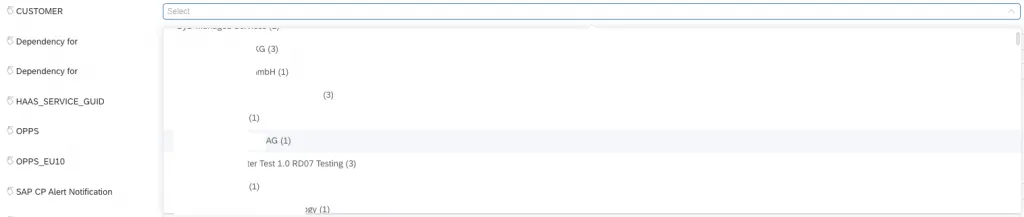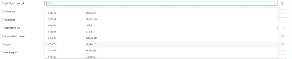 So far, the Cloud Availability app is “only” providing some interesting data that might be useful for a social engineering attack. If you ask: only? Yes, we have seen worse from SAP. But the post is not finished here, I promise will get there. The app shows configured monitoring setups for different SAP Cloud services. But there is more to it. You can filter the evaluations. The app provides filter values. Many filter values. And they work. So yes: jackpot. The app provides a rather huge list of information that you would not expect to be accessible so easily: customer names, account IDs, organizations, etc.