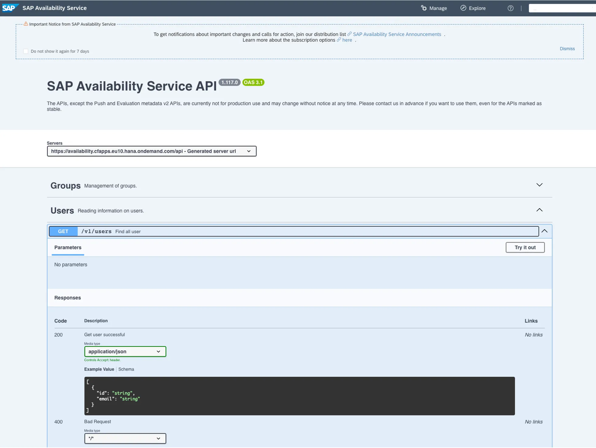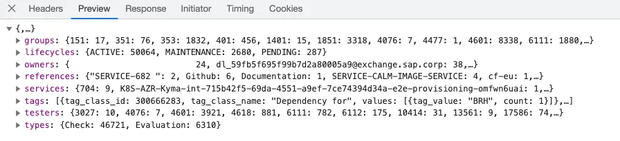 The JSON response contains several useful information like the e-mail addresses of the owners (owners: SAP employees).