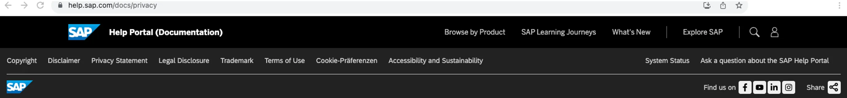 OK, not the privacy statement I expected. Header and footer, and no content? At least a footer that lets me adjust my cookie settings. But why is there no content? The link to privacy policy goes to: https://help.sap.com/viewer/privacy đź”—