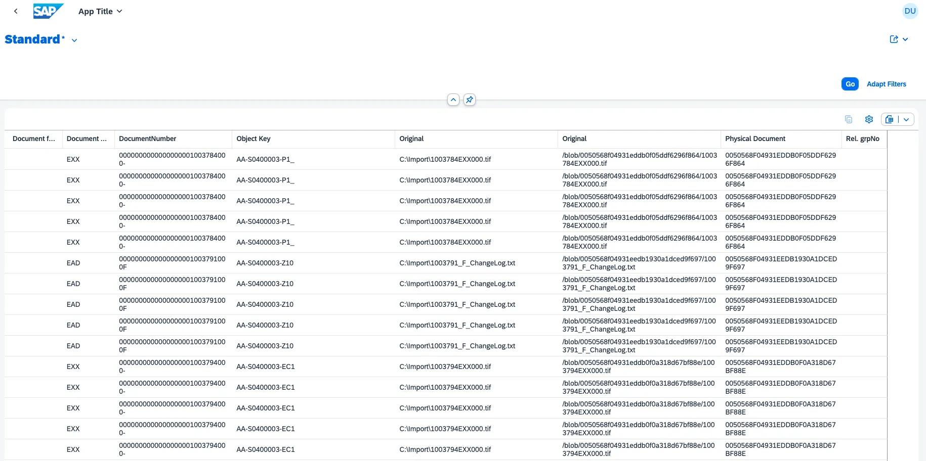 The public service is accessible and is annotated. This is nice as it allows you to use the service as a source for your own Fiori Elements app. Nothing fancy. But still nicer than to read the raw OData output. For instance, for entity set Documents: